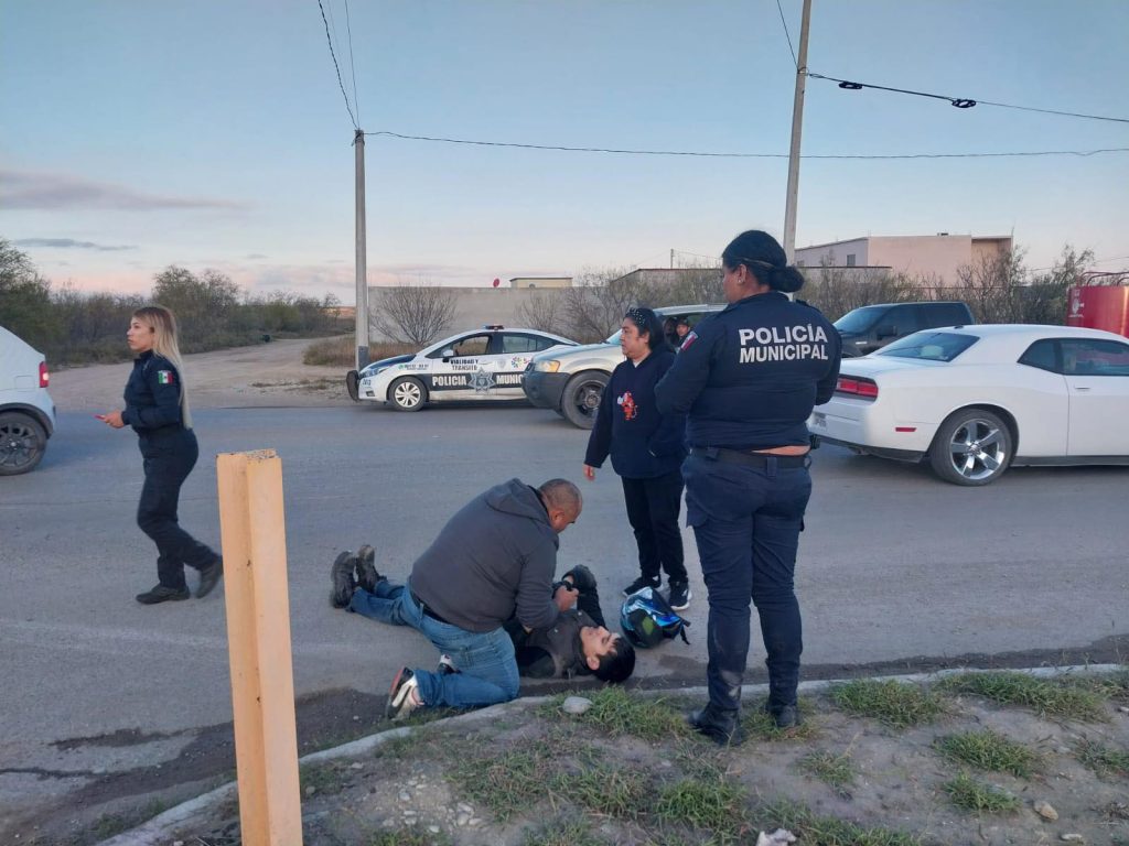 Paramédicos de Cruz Roja Sabinas, atendieron al motociclista de nombre Joel N de 27 años de una fractura en su pierna derecha, las autoridades establecieron que debido al exceso de velocidad no pudo detener el frágil vehículo y al frenar derrapó para colisionar contra el auto compacto.