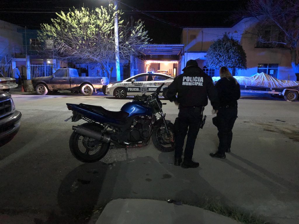 Policías preventivos tomaron conocimiento del accidente en el que participo una camioneta Chevrolet Captiva color café con placas de Coahuila y una motocicleta color azul marca Kawasaki con placas de circulación de Coahuila 43JCX7.