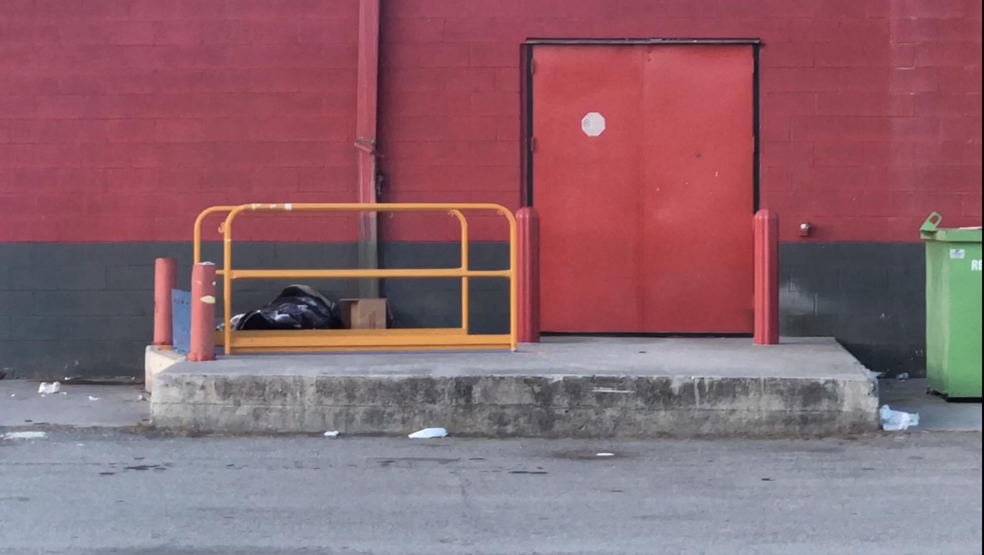 Pese al intenso frío un hombre en situación de calle pasó la noche a espaldas de la negociación Auto Zone en bulevar Paseo de los Leones y H. Farías en la colonia Fundadores de Sabinas en un sector comercial de la ciudad.