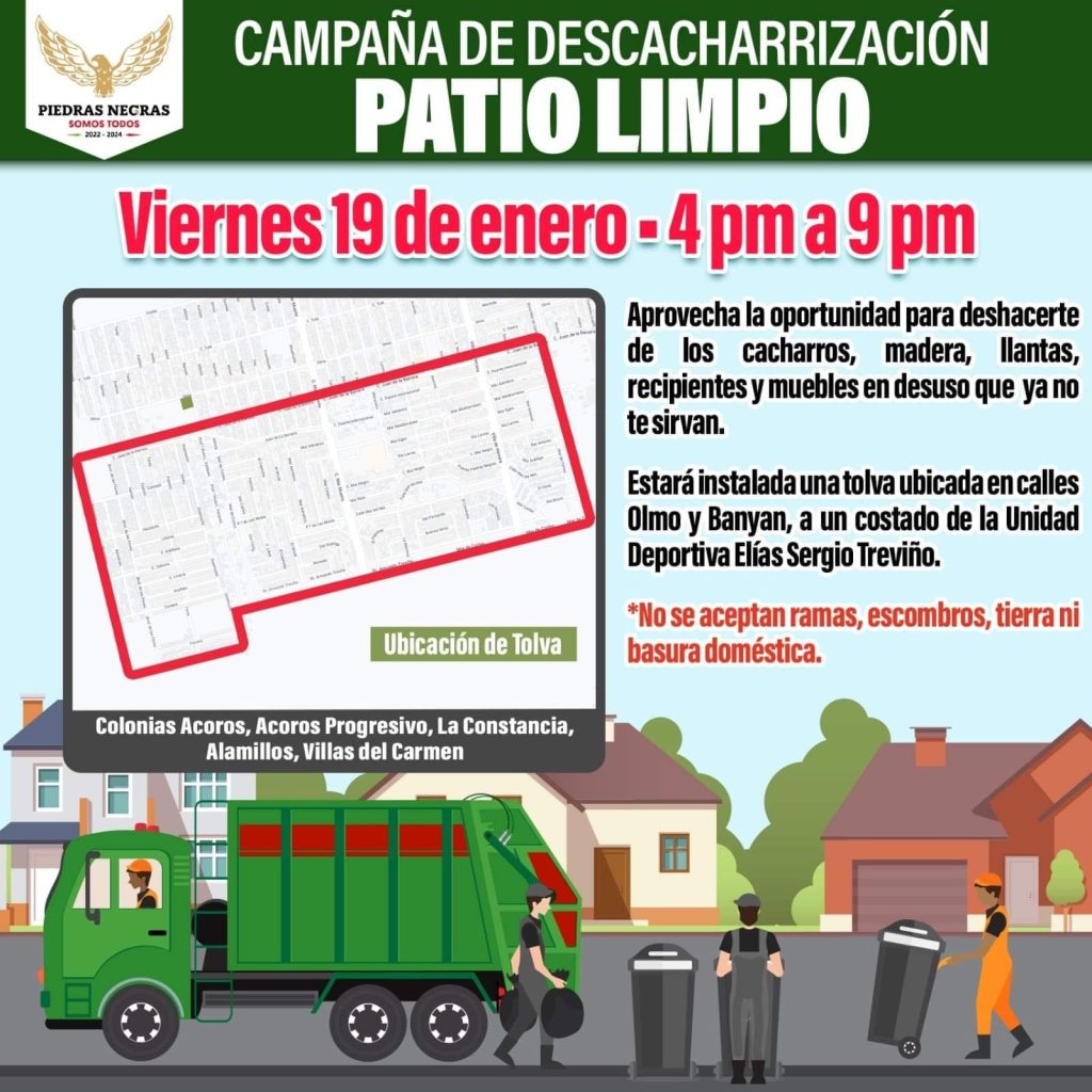 La Directora de Ecología e Imagen Urbana, Dorotea González informo que el programa de descacharrización y Patio Limpio se estará llevando a cabo este viernes a las colonias Año 2000 a partir de las 4 de la tarde hasta las 9 de la noche.