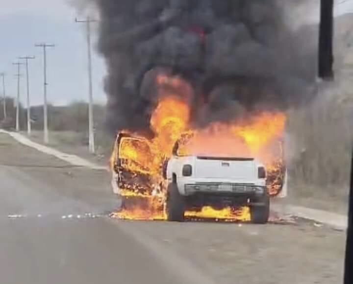 Una camioneta que se desplazaba por la carretera estatal de acceso al Cloete repentinamente se incendió mientras se encontraba en tránsito frente al antiguo basurero municipal.