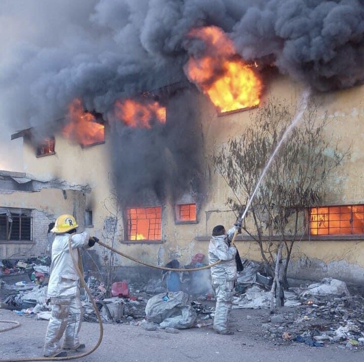 El incendio fue en el inmueble ubicado en calle Mineros sin número en el barrio cuatro, en el lugar las labores se dificultaron debido a que se almacenaban materiales altamente inflamables, como plástico y cartón de desecho.