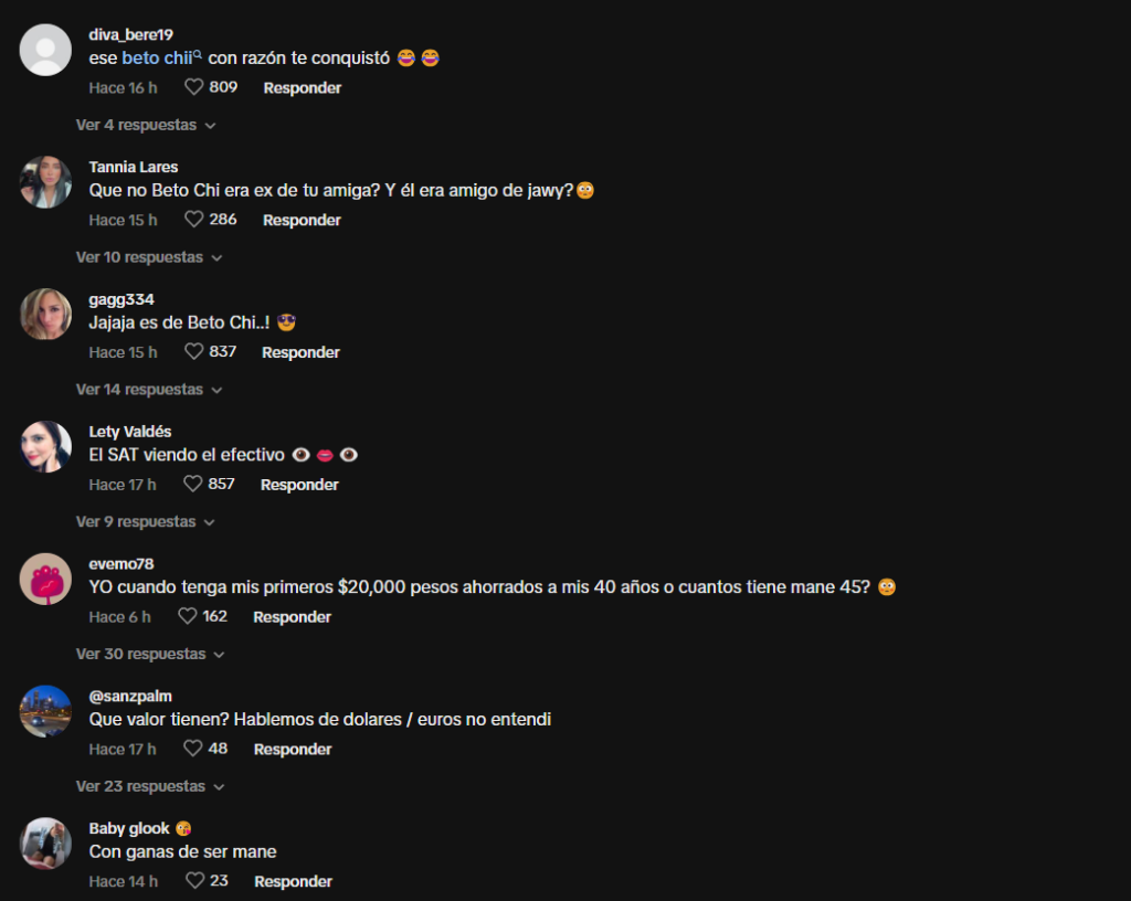 Las críticas no tardaron en llegar, acusándola de ser presumida y bromeando sobre posibles implicaciones con el Servicio de Administración Tributaria (SAT). Comentarios como “¿Por qué la necesidad de enseñar el dinero que posees?” y “El SAT viendo el efectivo” fueron comunes en la sección de comentarios.