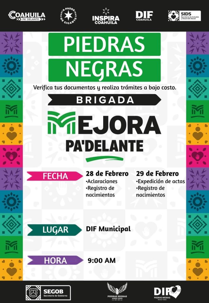 El Coordinador Regional del Programa Mejora Coahuila Franco Gonzalez hace una invitación a la ciudadanía nigropetense que requiera de un cambio en su acta de nacimiento, o aun no cuente con su registro que se acerquen a la brigada que se llevara a cabo en las instalaciones del DIF.