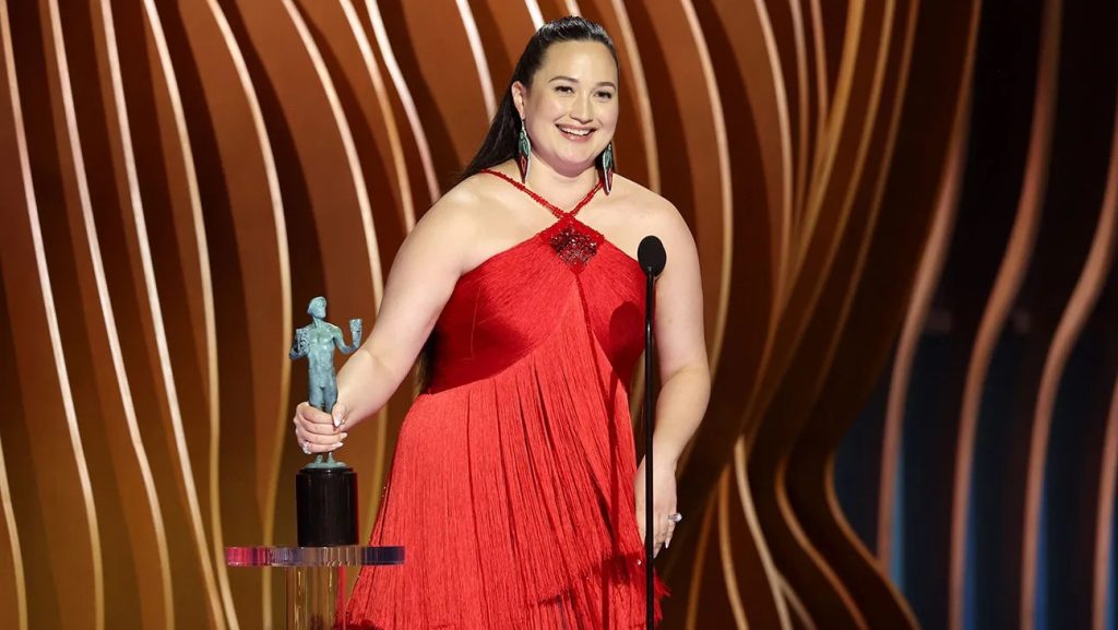 Lily Gladstone se llevó la victoria como mejor actriz por “Killers of the Flower Moon”, generando emoción y ovaciones en la sala. Su triunfo en una categoría muy disputada, frente a Emma Stone por “Poor Things”, destaca como una posible sorpresa en los próximos Oscar, siendo Gladstone la primera indígena estadounidense en ganar.