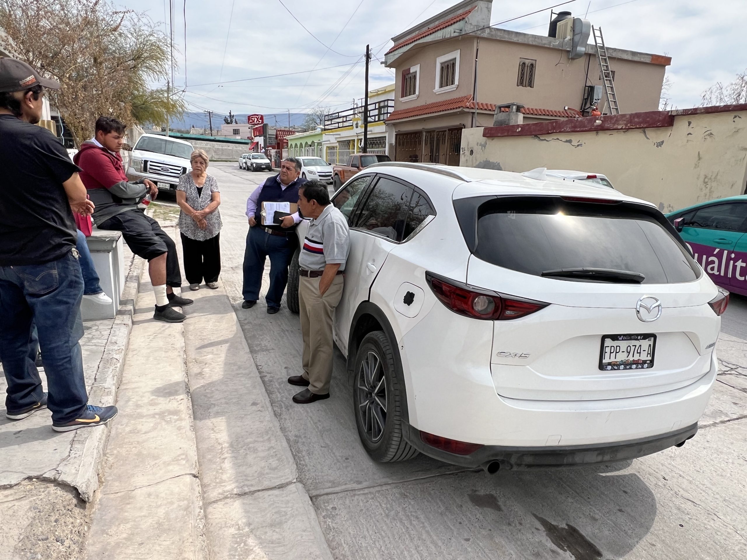 Al llegar al cruce con Múzquiz no se detiene y golpea una camioneta Mazda donde viajaba Adriana Macías. El motociclista quedó lesionado.