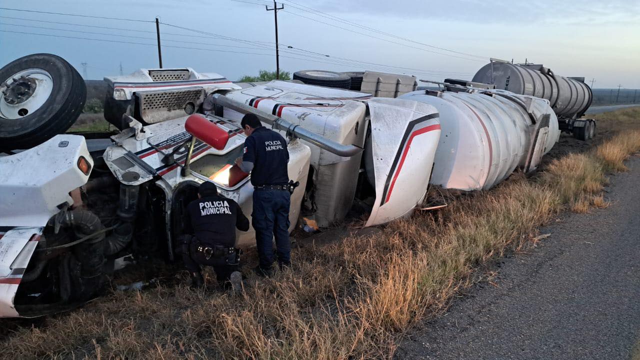 El percance de un vehículo que transportaba gasolina se registró en el tramo Sabinas el Sauz y movilizó a personal de emergencias a un accidente tipo volcadura.