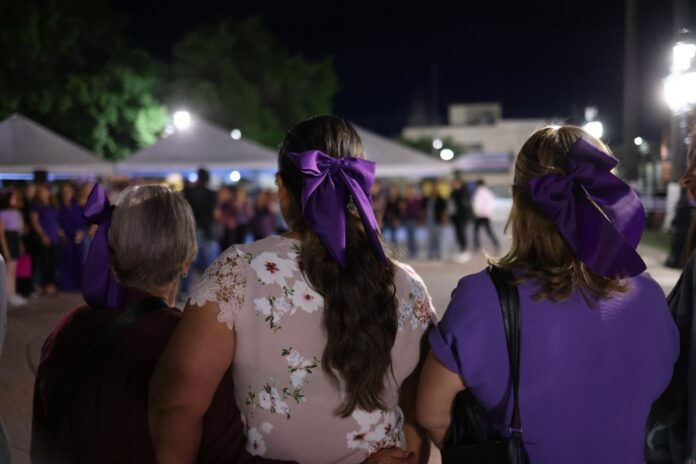 Encabezados por la presidenta honoraria del DIF Municipal, Ana Lucía Cavazos Cuéllar y por el secretario del Ayuntamiento, Alejandro González Farías, funcionarios del Gobierno Municipal participaron en la actividad con la que se busca concientizar a la población sobre el trabajo permanente por alcanzar la igualdad de oportunidades para la población femenina.