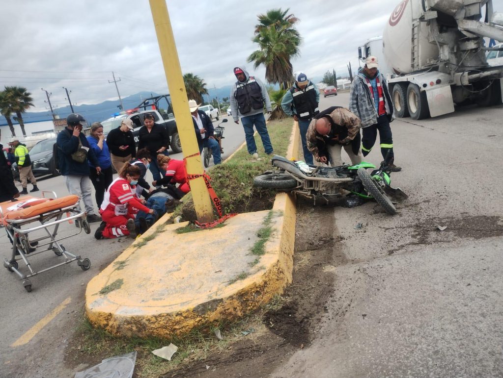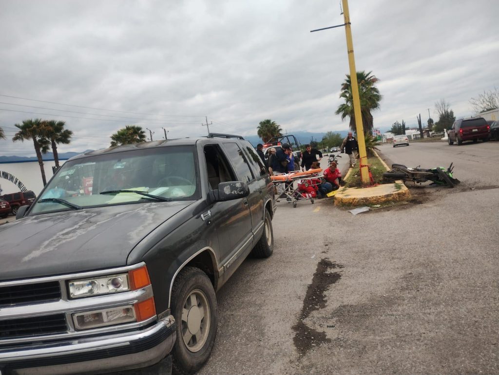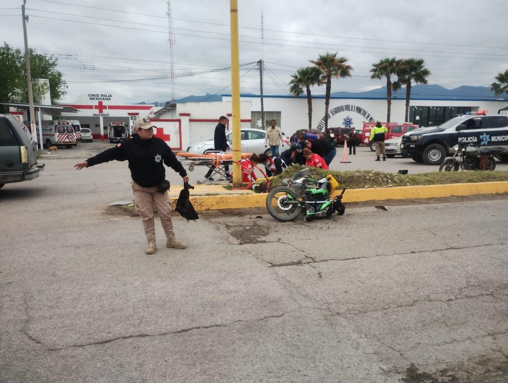 La coordinadora de Cruz Roja, Silvia Conteras, dijo que el motociclista presenta lesiones luego que una camioneta lo embistió.