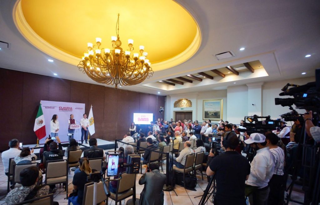 Claudia Sheinbaum candidata a la Presidencia de México por la Coalición “Sigamos Haciendo Historia” habló ante medios de comunicación en Saltillo.