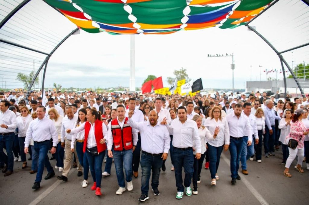 Tras arrancar el contingente de militantes, simpatizantes, miembros de la planilla de la Alianza Ciudadana por la Seguridad y la Candidata a la diputación Federal Sonia Villarreal desde la asta bandera de la Gran Plaza, la Aspirante a la candidatura por la Alcaldía de Piedras Negras Norma Treviño se unió al contingente en silla de ruedas para realizar su registro ante el IEC Municipal.