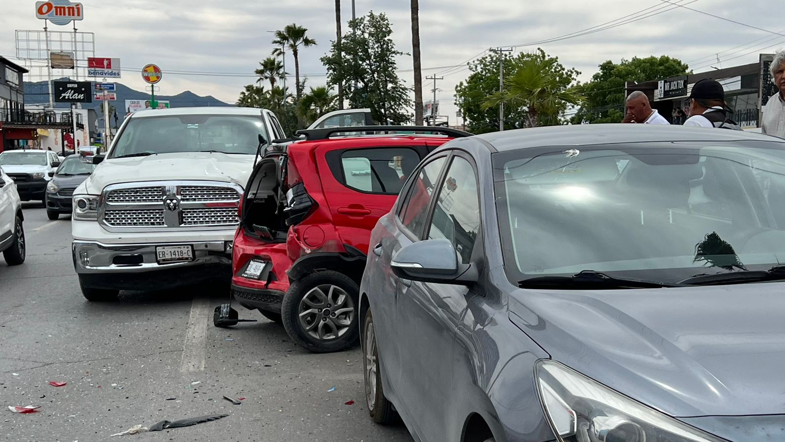 Mata López quedó como presunto responsable al conducir una camioneta Dodge RAM color blanco placas ER-1418-C no midio distancia se impactó contra la parte trasera de un Fiat tipo MOBI color rojo placas EUL-469-C que conducía una dama identificada como Yessica Yajaira que termino por impactarse con un KIA tipo Rio color gris que conducía Luis Alberto Sosa.