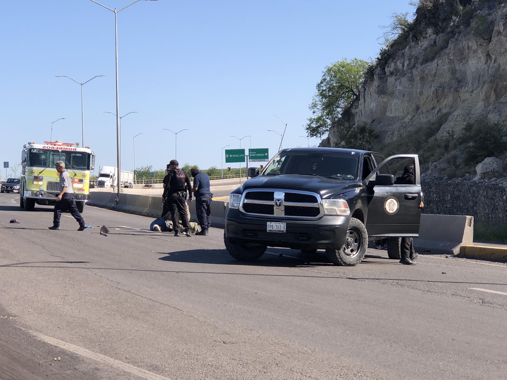 Elementos de Guardia Nacional, Fiscalía General del Estado, bomberos, Cruz Roja y Seguridad Pública, se movilizaron tras un llamado de una persona que se encontraba tendida en los carriles de circulación de sur a norte de la citada vía federal.