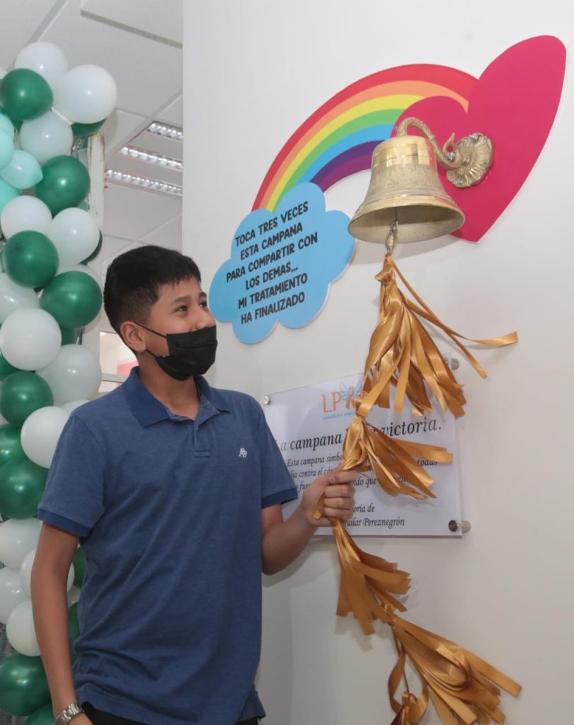 En ese marco, el joven Nicolás Ismael Briones Ruiz, tocó la simbólica campana con la que se anunció la conclusión de su tratamiento contra el cáncer; minutos más tardes, causó alta médica para retornar a su hogar.