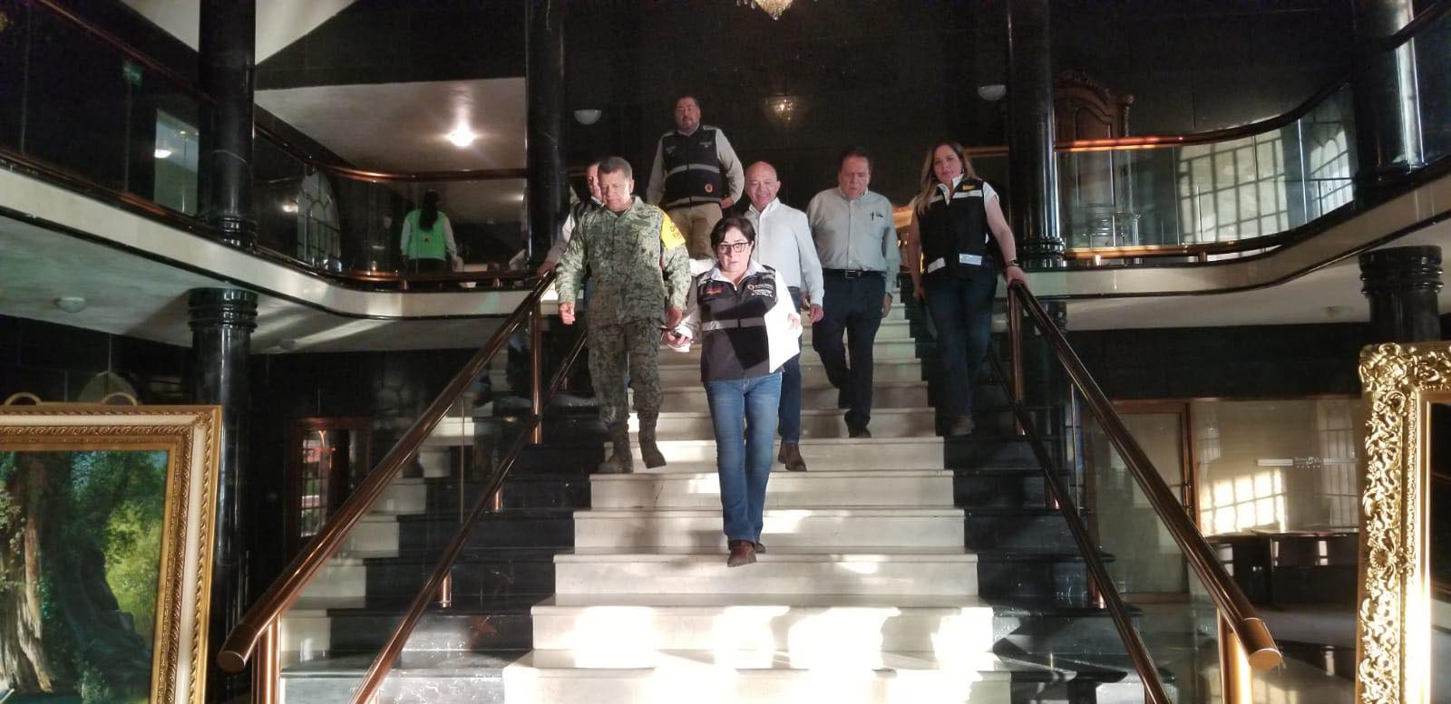 En la reunión, a puerta cerrada, estuvieron la coordinadora Nacional de Protección Civil Laura Velázquez Alzúa, el secretario de Gobierno de Coahuila, Óscar Pimentel González, el Fiscal General del estado FGE, Gerardo Márquez Guevara y Nazira Zogbi Castro de la secretaría del trabajo estatal.