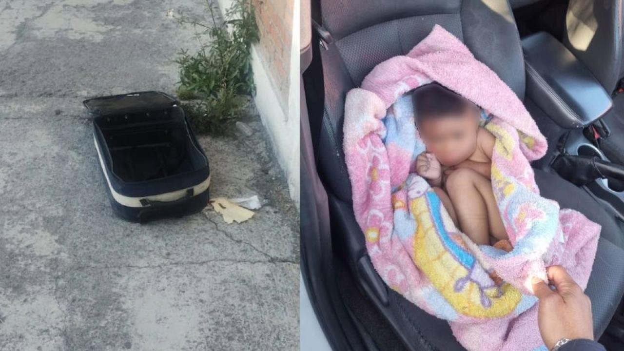 En las calles de Puebla, una vecina descubrió a un niño de aproximadamente dos años dentro de una maleta abandonada.