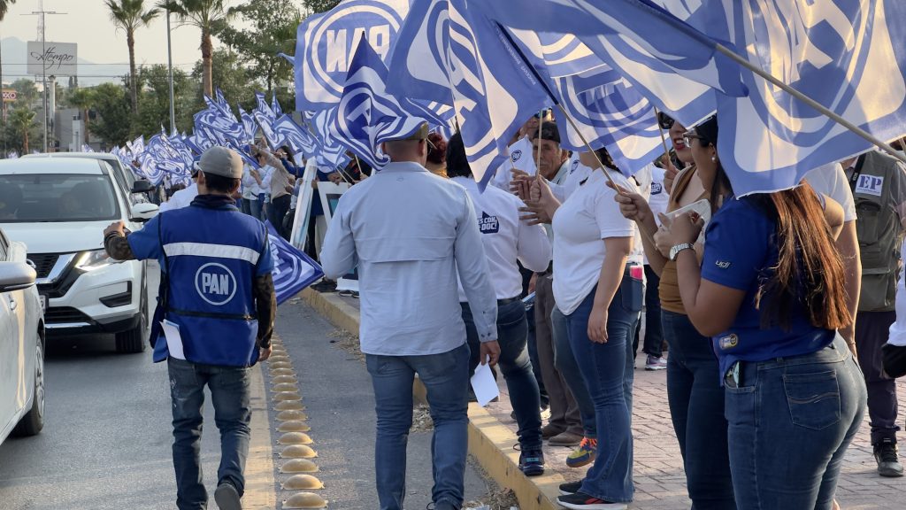 Una valla humana de 700 metros de largo, de la avenida Monterrey hasta Juárez recibió a los automovilistas en bulevar Pape, en una muestra de apoyo a su abanderado.