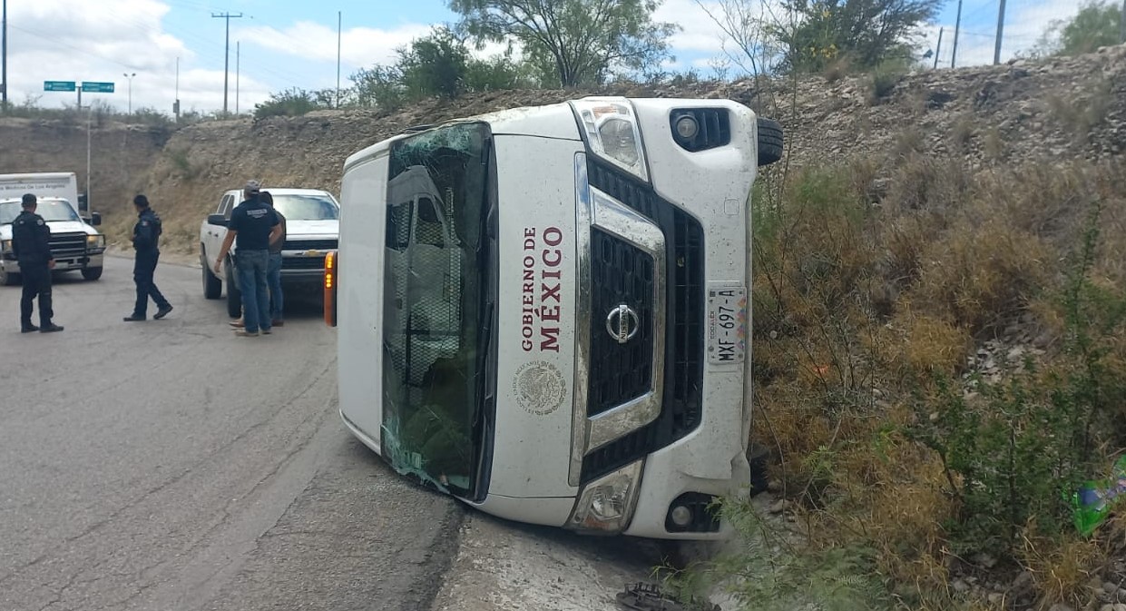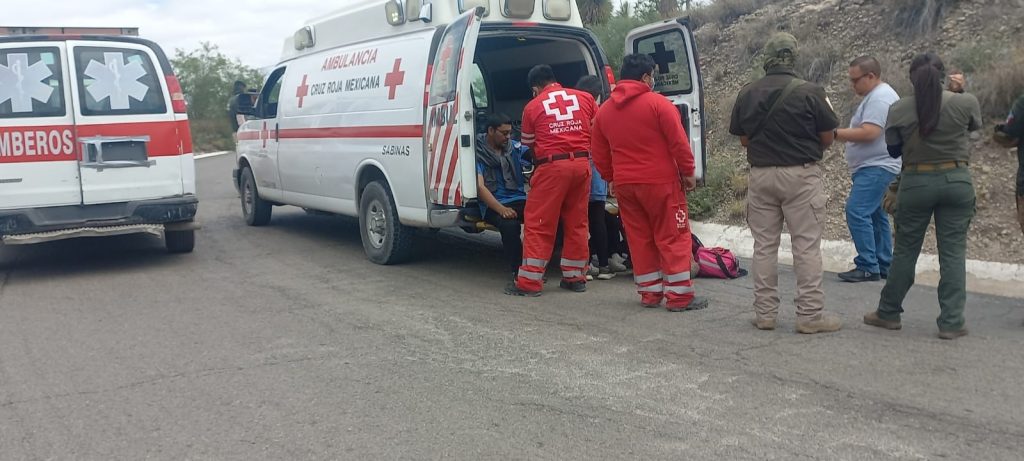 Arnold Mendoza, técnico en urgencias médicas de Cruz Roja Sabinas, informó que los ocupantes del vehículo oficial marca Nissan Urvan se encuentran con signos vitales estables.