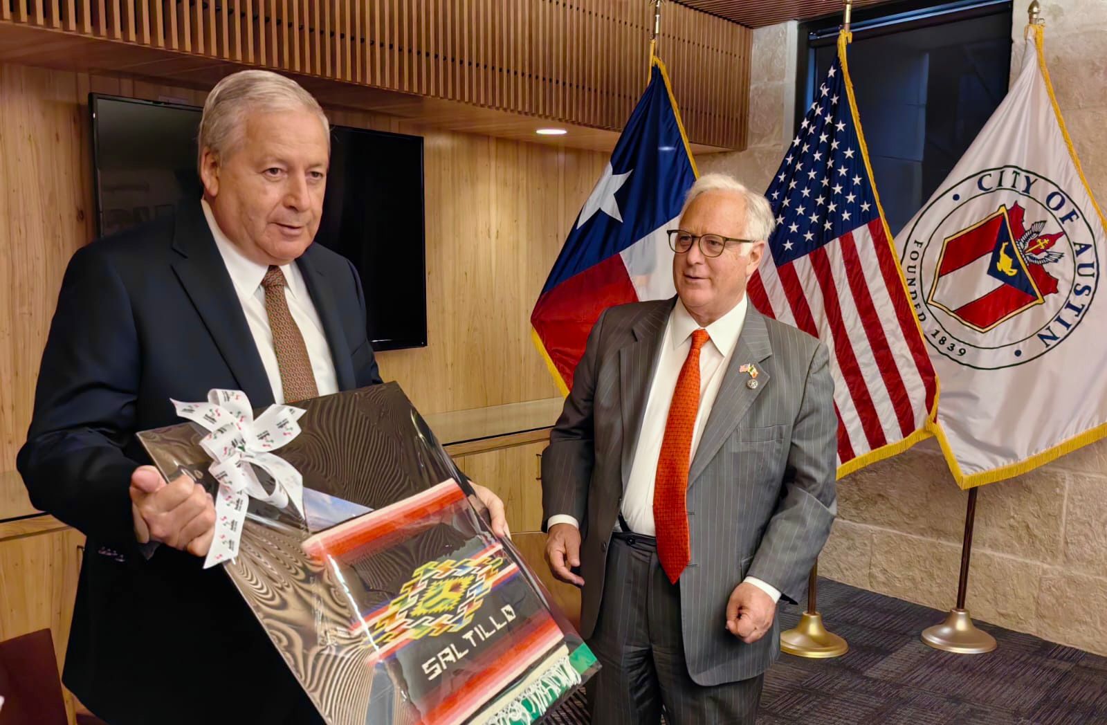 Agradeció además la anfitrionía para la celebración del 55 aniversario del hermanamiento entre Saltillo y Austin en la capital Texana.