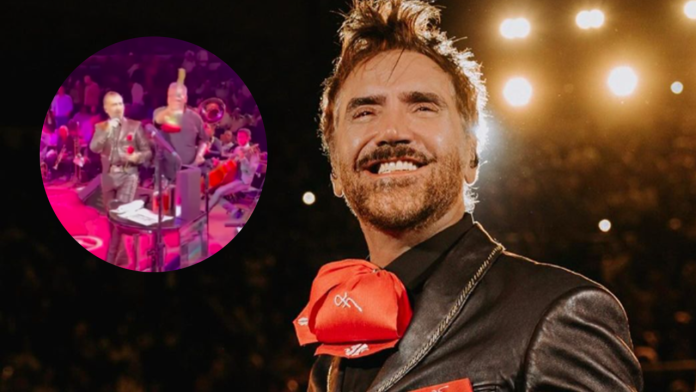 Durante una presentación reciente, mientras Alejandro Fernández cantaba, un ramo de rosas voló hacia él. Su guardia de seguridad, alerta, interceptó las flores, evitando que impactaran al cantante.