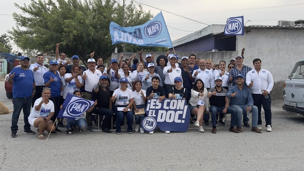 El abanderado de Acción Nacional mantiene su campaña proselitista recorriendo las colonias y tocando puertas de los ciudadanos para promover su propuesta de gobierno.
