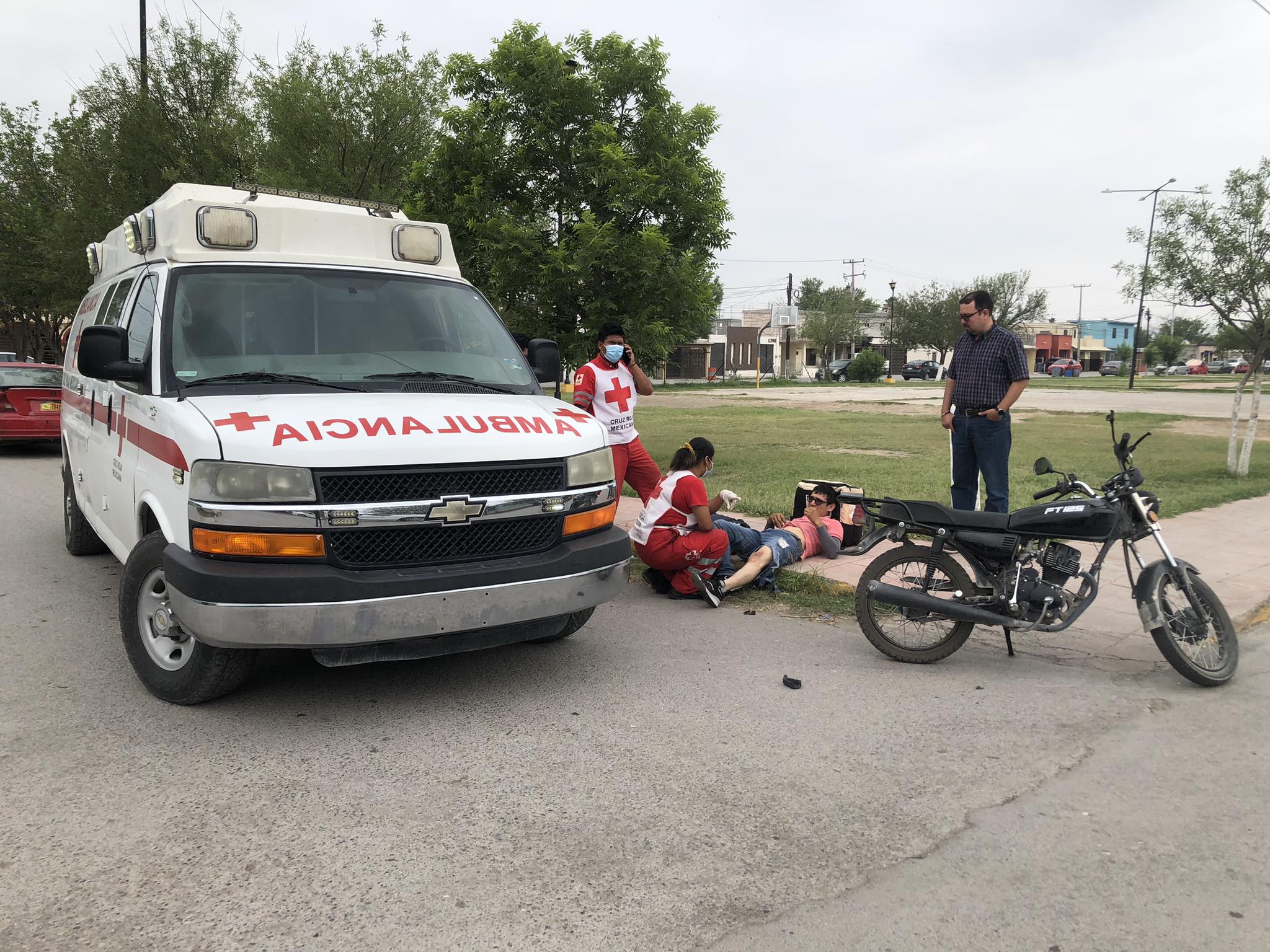 Luis Méndez de 33 años, vecino de la colonia Las Palmas, resultó con golpes en distintas partes del cuerpo al ser derribado, presentaba algunos raspones únicamente informó Arnold Mendoza, operador de ambulancia de Cruz Roja.