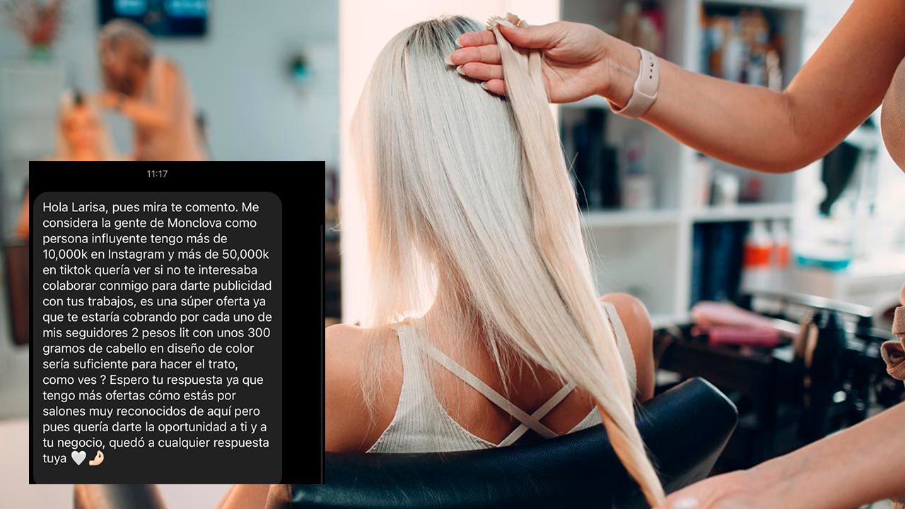 Este martes 21 de mayo una usuaria utilizó la página de su negocio para exhibir un mensaje que recibió por parte de una mujer, quien aseguró que quería ‘darle la oportunidad’ de colaborar a cambio de 300 gramos de cabello.