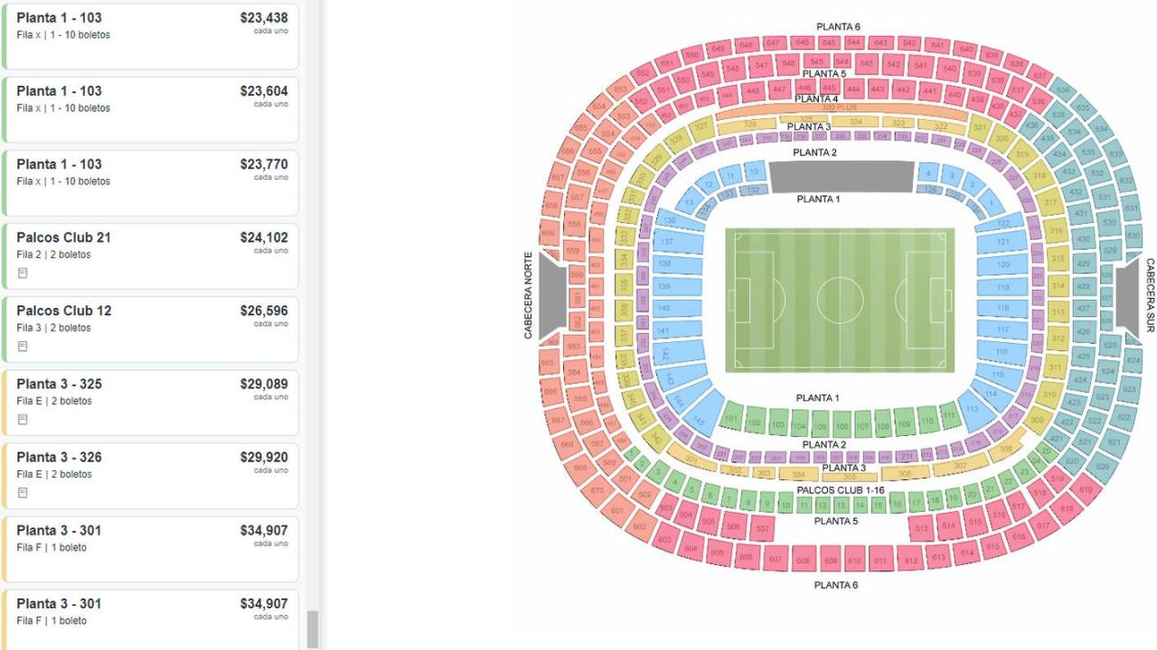 Plataformas como StubHub ofrecen una variedad de entradas, desde las más económicas a partir de 4 mil 150 pesos hasta las más costosas, que alcanzan hasta 35 mil pesos por boleto. Este aumento significativo en los precios refleja la gran demanda y la pasión de los aficionados por presenciar este encuentro histórico.