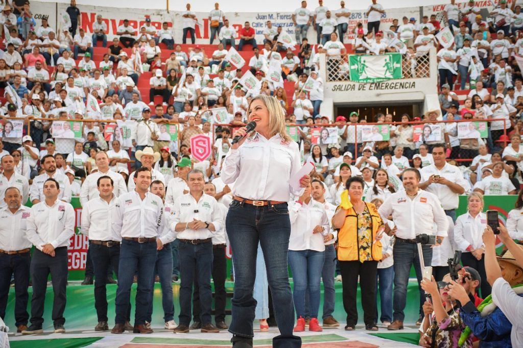 El evento tuvo como sede la Plaza de Toros Monumental Arizpe, donde la Candidata compartió escenario con los candidatos del PRI en esta elección, Miguel Ángel Riquelme Solís y María Bárbara Cepeda Boehringer al Senado de la República, el suplente de esta fórmula Gabriel Elizondo Pérez y la candidata a Diputada Federal por el Distrito 01, Sonia Villarreal Pérez.