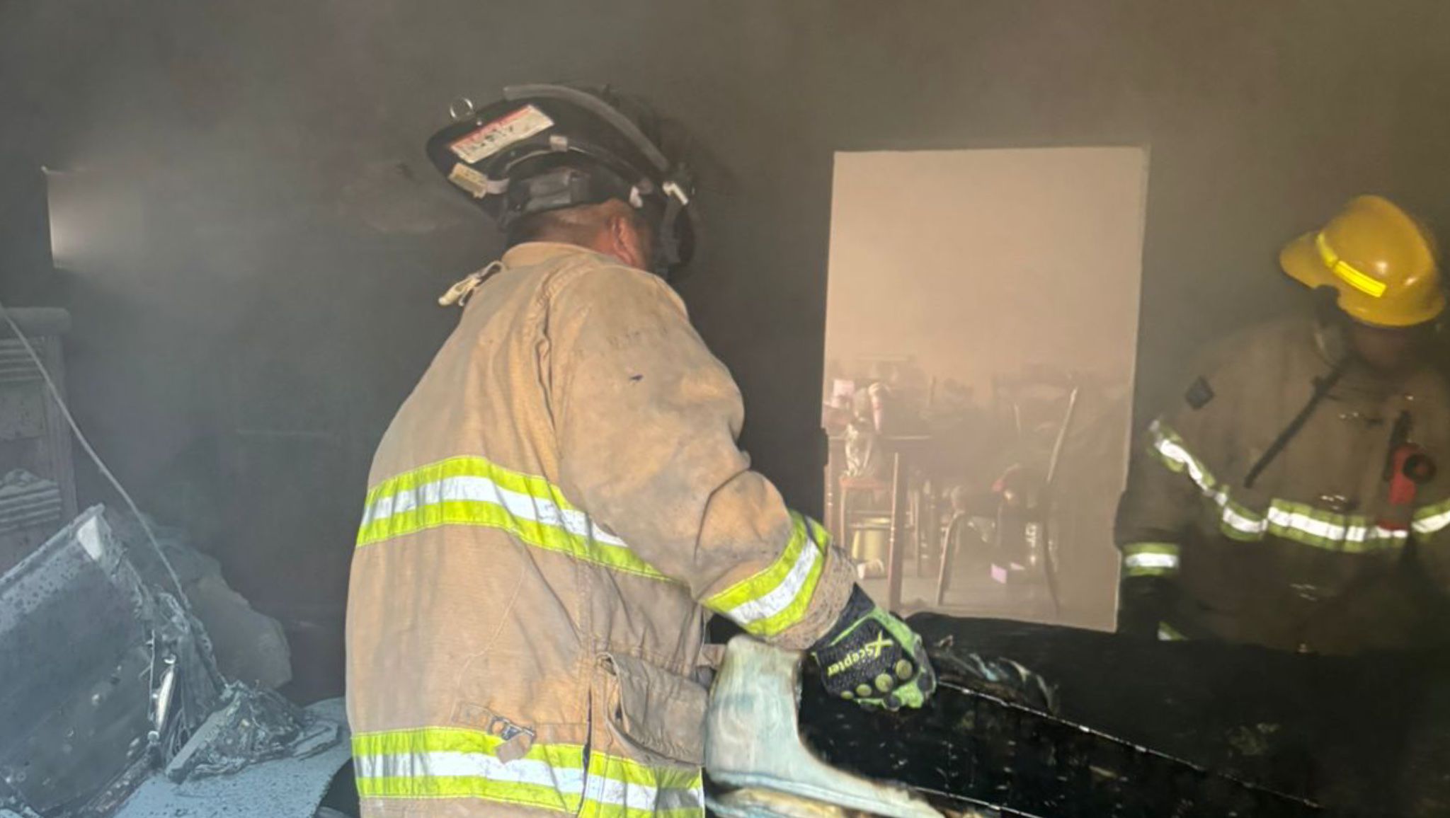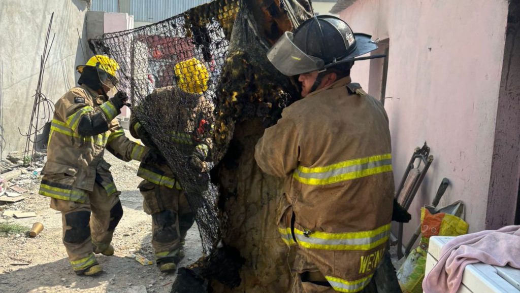 Al tiempo que mangueras maniobradas por bomberos sofocaban el incendio que se logró controlar antes de que se expandiera a otras habitaciones.