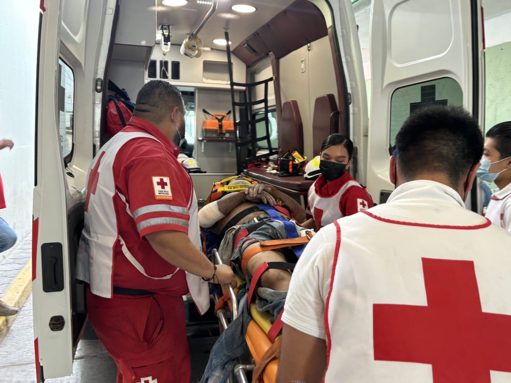 Paramédicos de Cruz Roja acudieron de inmediato para brindarle los primeros auxilios luego trasladarlo a la clínica 7 del Seguro Social.