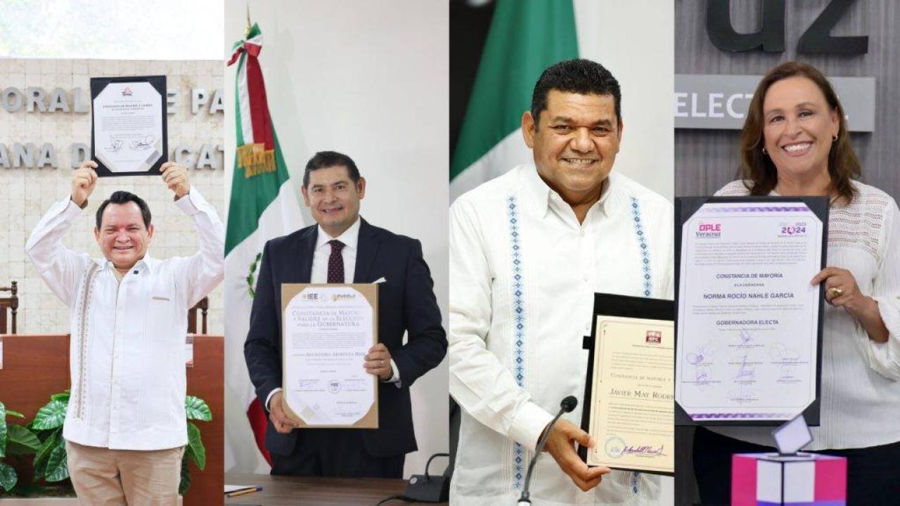 Los institutos electorales de las ocho entidades que eligieron gobernador el 2 de junio entregaron este domingo las constancias de mayoría a los candidatos ganadores. Guanajuato, Morelos y Veracruz tendrán mujeres gobernadoras por primera vez, mientras que en Yucatán habrá una nueva alternancia.