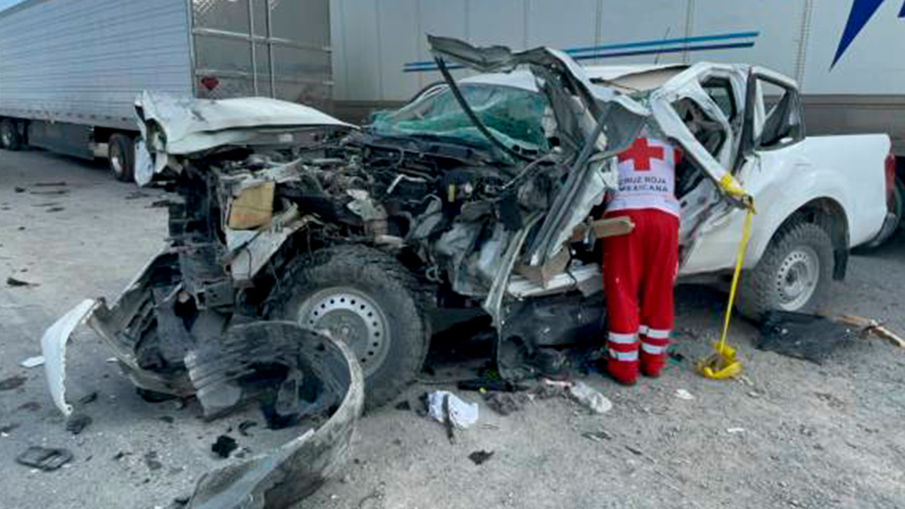 Un fuerte accidente ocurrió la mañana de este martes en la carretera libre a Torreón, resultando en dos hombres lesionados. Uno de ellos quedó atrapado cuando su camioneta chocó a alta velocidad contra un tráiler.