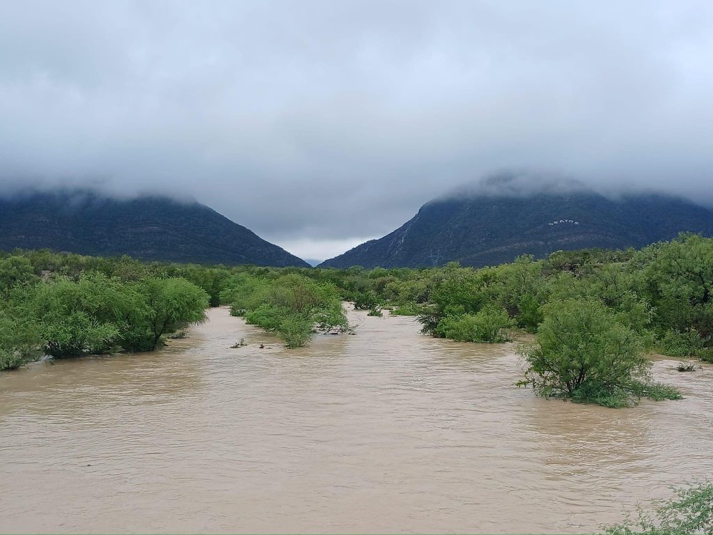 Lugareños dieron a conocer a Protección Civil sobre el desbordamiento del Río Sabinas a la altura de la tribu Kikapú en la sierra de Múzquiz, en videos se logra apreciar el acumulamiento de los escurrimientos en la zona y que permitió al río Sabinas elevar considerablemente su cauce.