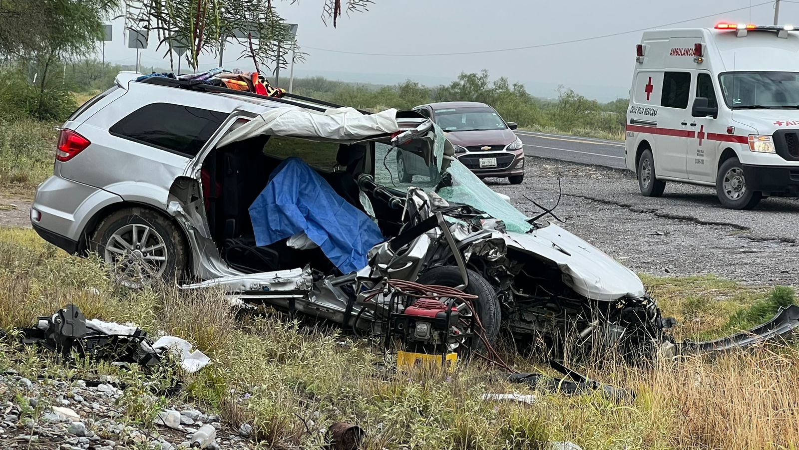 El accidente se registro cerca de las 5:40 de la mañana en el lugar descrito se presume venían de Saltillo con destino hacia Frontera, que el conductor dormito al volante para cuando se dio cuenta ya tenia la parte trasera del tráiler enfrente trato de hacerse a un lado llevándose el golpe en la parte lateral derecha donde viajaba la mujer.