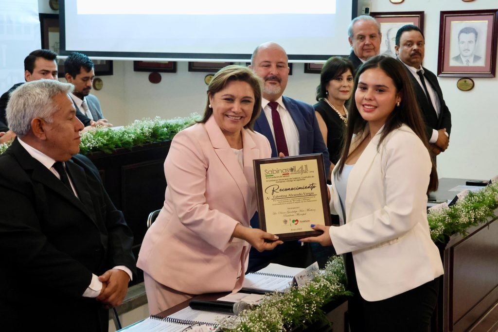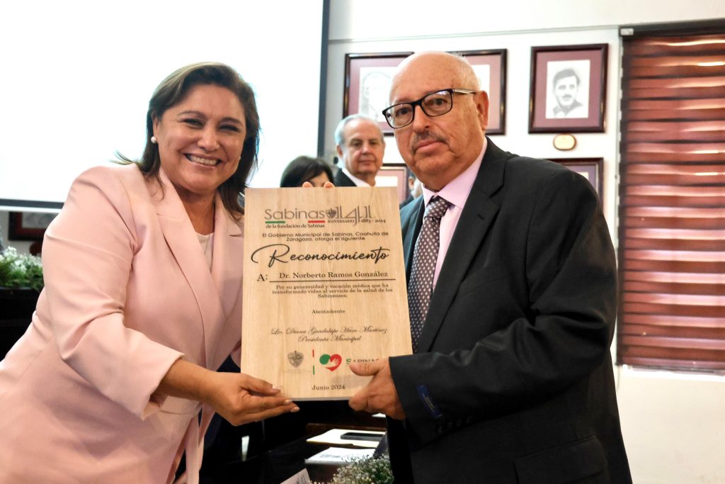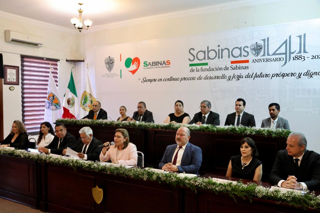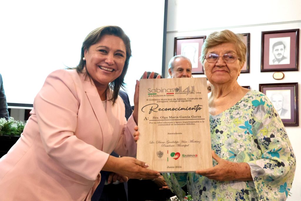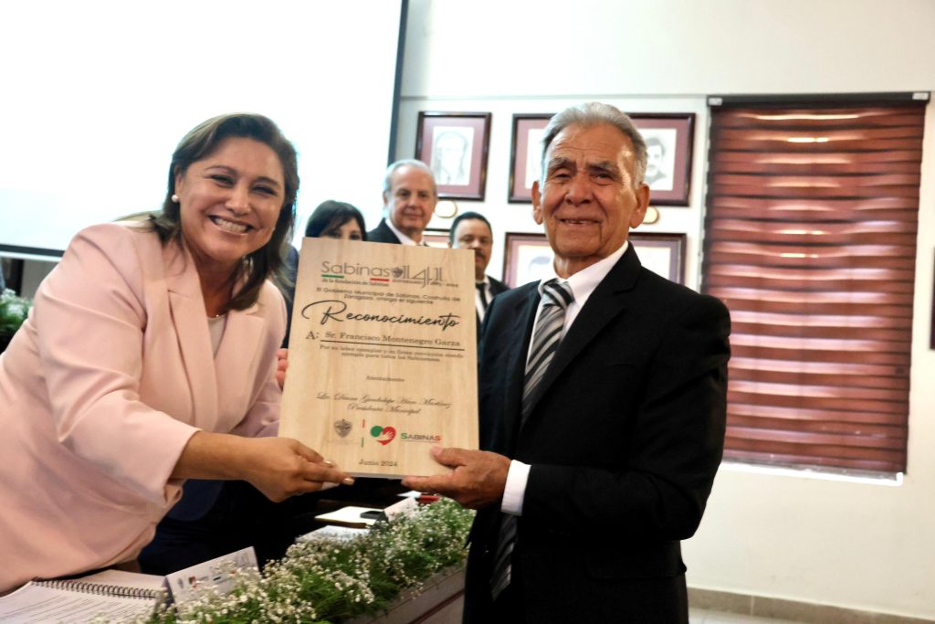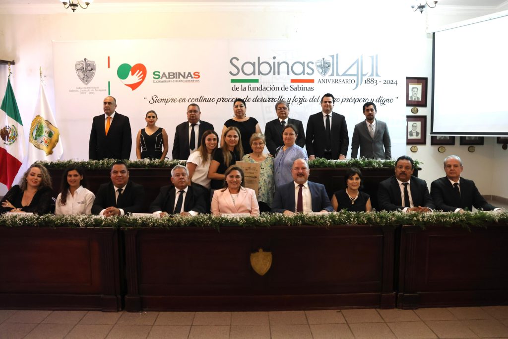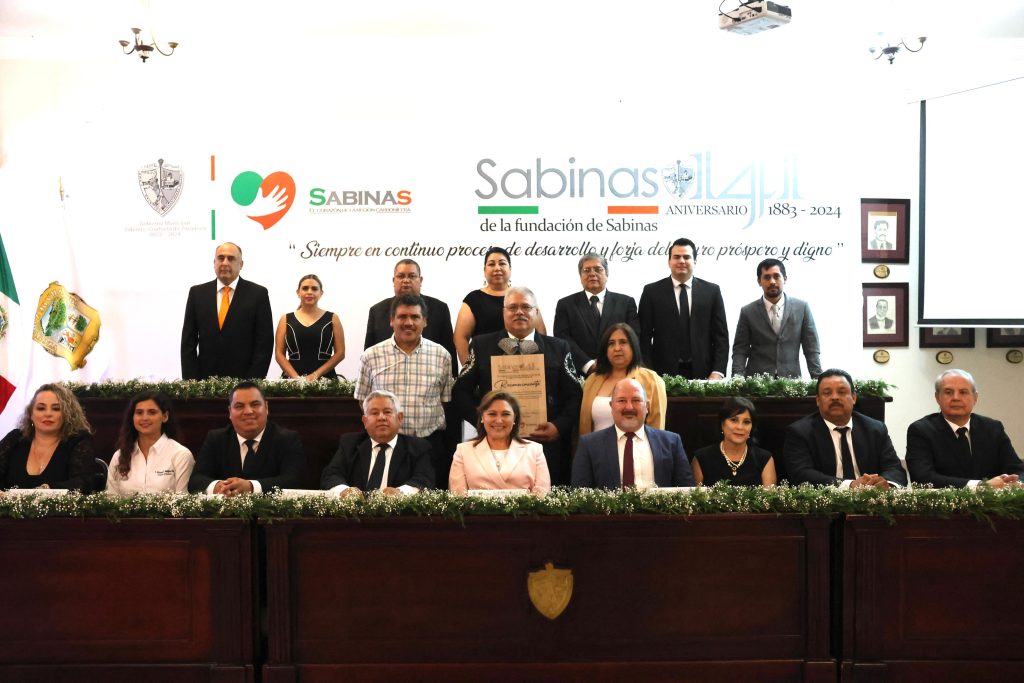Posteriormente en sesión solemne de cabildo, entregaron reconocimientos a cuatro ciudadanos distinguidos como son el señor Francisco Montenegro Garza, doctor Norberto Ramos González, el profesor Marcos Enrique Gómez Samaniego y la señora Olga María García Garza, quienes estuvieron acompañados por sus familias y les dijo la alcaldesa que ellos son un ejemplo para seguir. En el lugar estuvieron también el exalcalde Cuauhtémoc Rodríguez Villarreal y la reina de Sabinas Yahayra I.