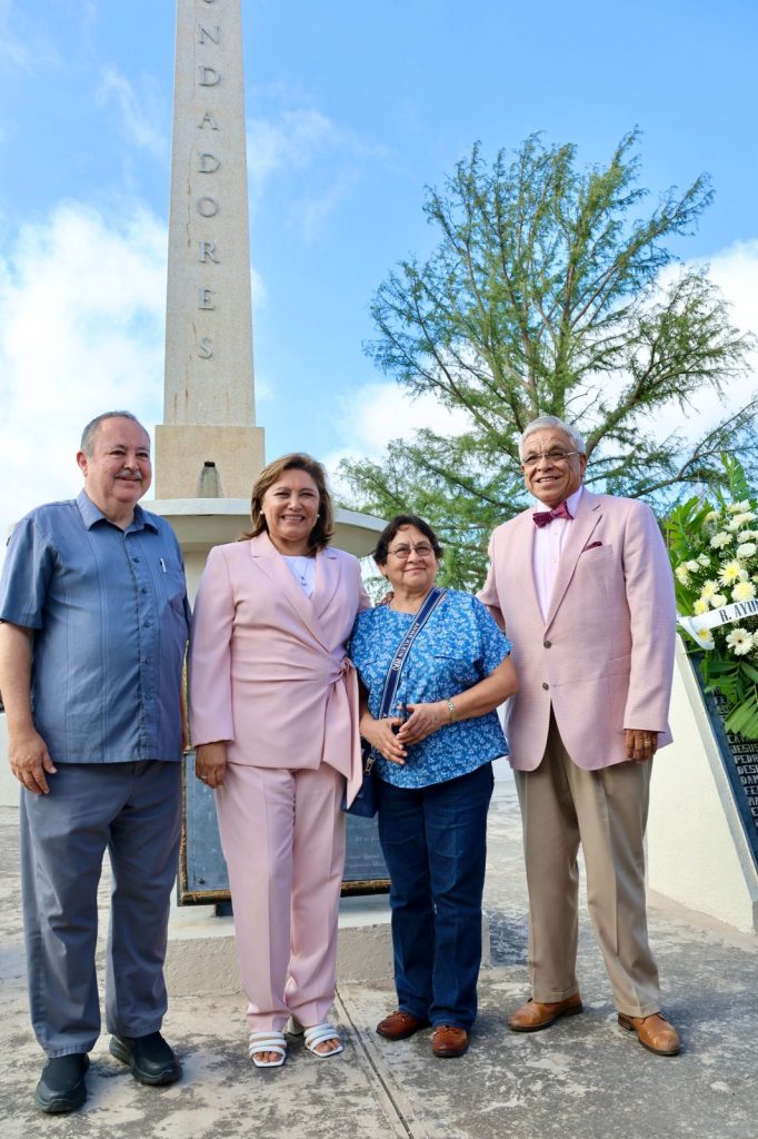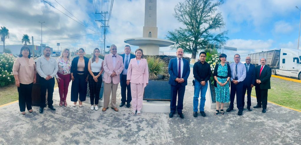 Sabinas, Coahuila (25 de junio 2024). – La alcaldesa Diana Haro Martínez junto con el cabildo en pleno, el doctor David Alejandro Mussi Garza, jefe de la Jurisdicción Sanitaria en la Región Carbonífera, representante del gobernador de Coahuila Manolo Jiménez Salinas e invitados especiales, encabezó los eventos por el 141 aniversario de la fundación de Sabinas, que inició con la visita al obelisco de los fundadores donde depositaron una ofrenda floral en su memoria, guardias de honor y escucharon la reseña que presentó el historiador licenciado Gerardo García Ayala con detalles del arribo de las primeras familias.