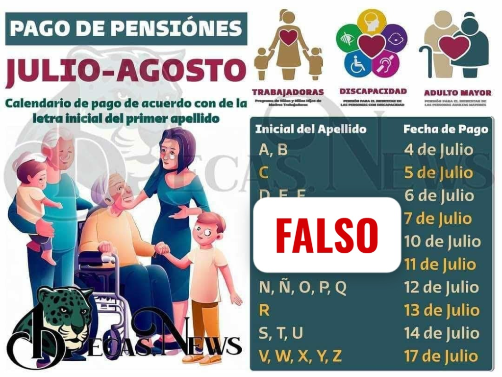 Después de dos meses sin recibir el pago, los beneficiarios de la Pensión del Bienestar para adultos mayores están esperando el calendario oficial que se publica por apellido. En redes sociales y grupos de WhatsApp ha circulado un calendario no oficial, que señala el inicio de los pagos el 4 de julio. Es importante aclarar que esta información no es oficial.