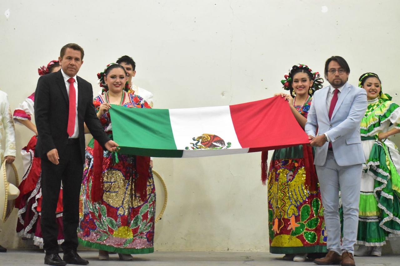 La Dirección de Educación y Cultura que dirige la maestra Rosa María Hipólito organizaron este evento que reunió a los talentosos alumnos del Ballet Folclórico, sus maestros y familia que orgullosos participaron en el abanderamiento.