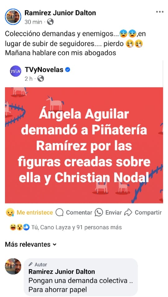 El dueño de Piñatería Ramírez trató de evitar problemas legales con Ángela, pero no tuvo éxito y ahora enfrenta una difícil situación legal. Han pedido asesoría legal de sus seguidores para poder responder a la demanda.