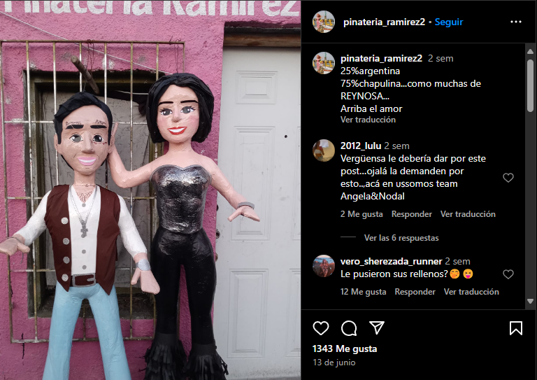 La noticia generó mucha polémica y ambos cantantes recibieron críticas en México y Argentina. En respuesta, surgieron memes, videos y hasta piñatas en las redes sociales. La Piñatería Ramírez, conocida por sus figuras de personajes populares, lanzó piñatas de Christian Nodal y Ángela Aguilar. Estas piñatas destacaban los tatuajes en el rostro de Nodal y una figura más pequeña de Ángela. La descripción de las piñatas decía: “Piñata de la tía del año, 25% argentina, 75% chapulina”, generando muchos comentarios entre sus más de 244 mil seguidores.