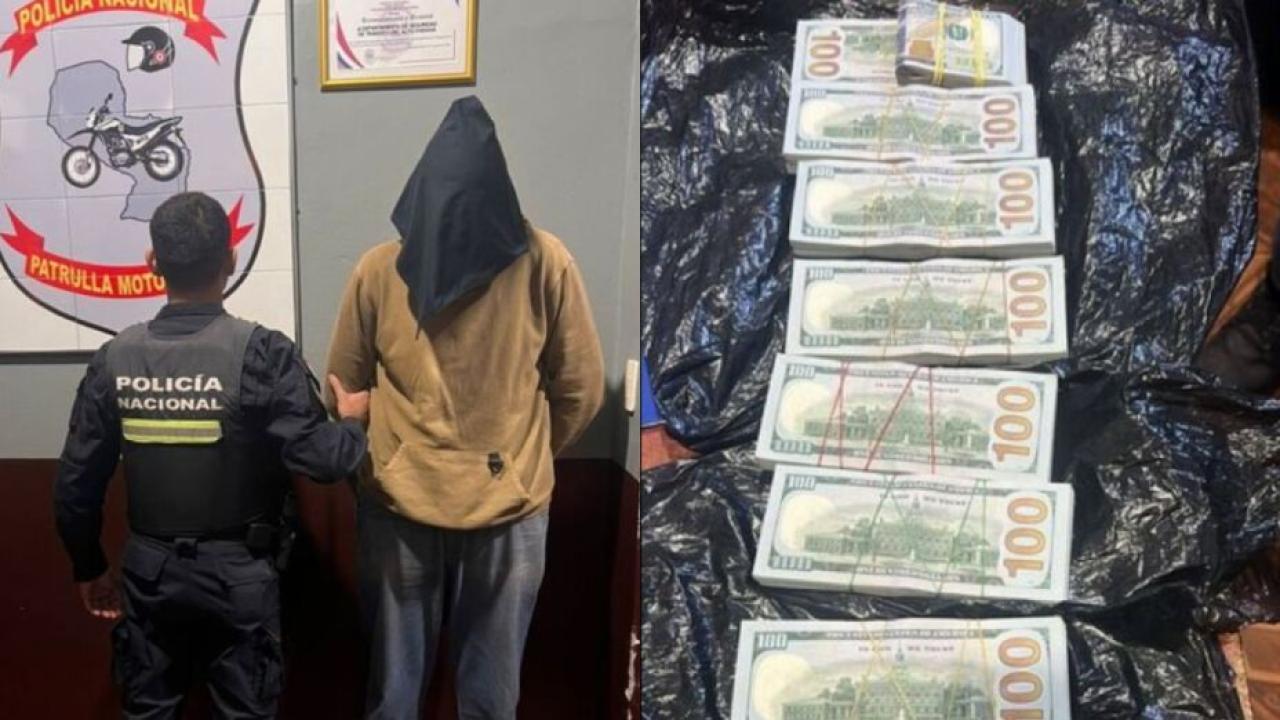 La Policía Nacional de Paraguay detuvo a un hombre de 26 años con 90 mil dólares americanos adheridos al cuerpo. El detenido afirmó ser empleado de una casa de cambio y se dirigía al microcentro en motocicleta.