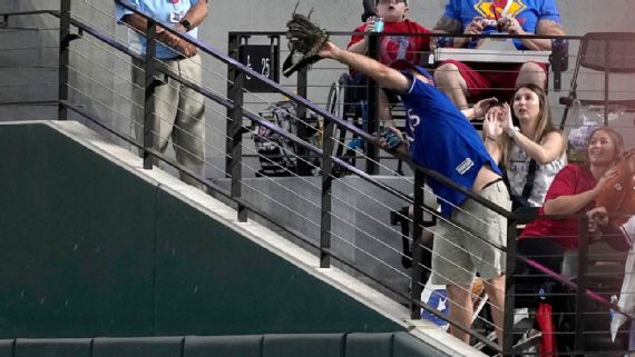 La impresionante racha de 19 juegos consecutivos en los que Randy Arozarena alcanzó base llegó a su fin el domingo. Los Tampa Bay Rays sufrieron una derrota abrumadora de 13-2 ante los Texas Rangers, y fue en el séptimo episodio cuando un aficionado, con un guante y una camiseta de Shin-Soo Choo, interrumpió un elevado de foul de Arozarena hacia el jardín derecho.