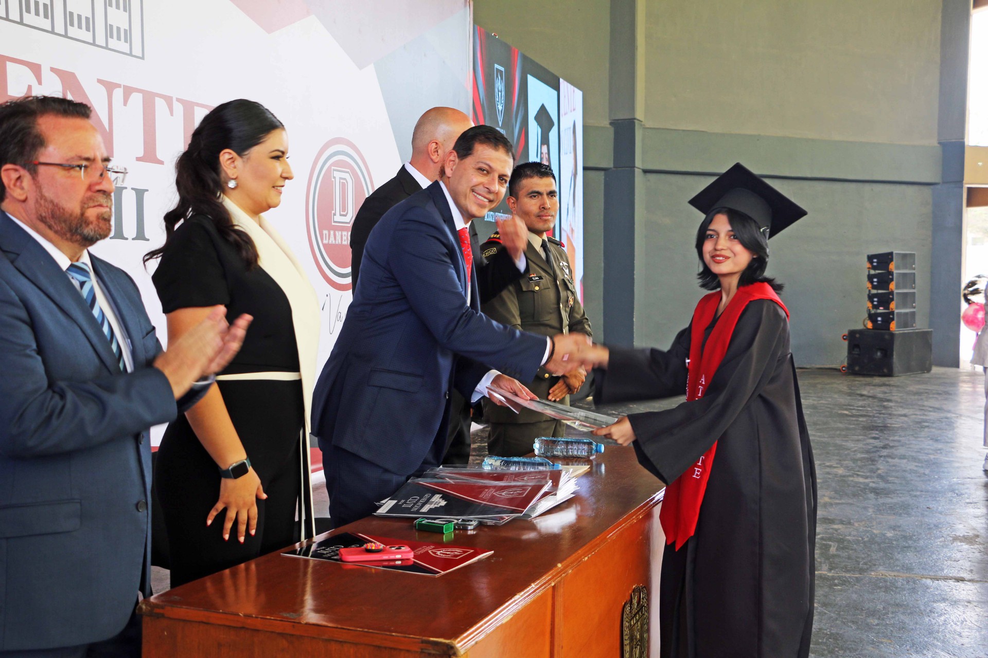 Así como el rector de la Universidad Autónoma de Coahuila, Octavio Pimentel Martínez, el oficial mayor de la UAdeC y padrino de la generación, Josué Garza Carrales, la directora del plantel, Nayely Mery González