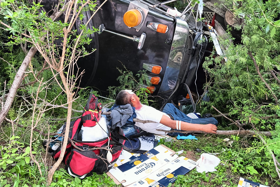 Elementos de Protección Civil procedieron a descender encontrando una persona de sexo masculino que únicamente pudo identificarse como Vicente de 58 años de edad, el cual se encontraba en el interior del tracto camión.
