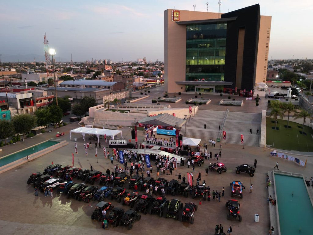 Desde la explanada de la Plaza Mayor de Torreón, Manolo Jiménez el alcalde Román Cepeda dieron el banderazo de salida de la carrera Coahuila 1000, con la participación de pilotos de diferentes estados del país y del extranjero.