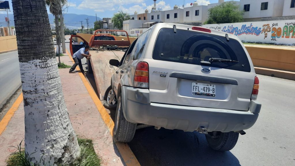 Control de Accidentes, acudieron al lugar para proceder con el aseguramiento del vehículo. La camioneta involucrada, una Ford Escape color arena, sufrió daños considerables debido al fuerte impacto.