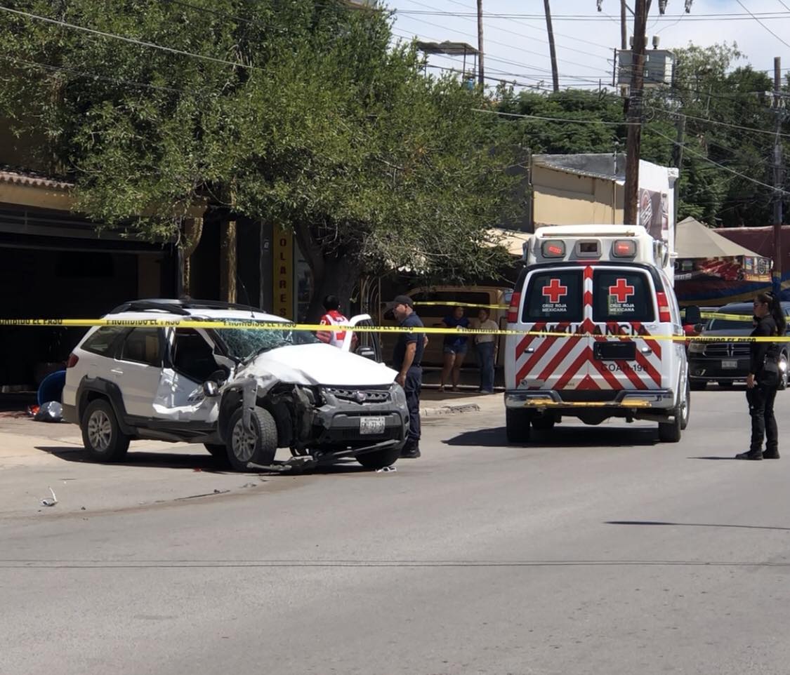 Una joven mujer sin vida, un herido y daños materiales en dos vehículos, fue el saldo de un choque atropello en el primer cuadro de la ciudad sobre la avenida Zaragoza de Sabinas.