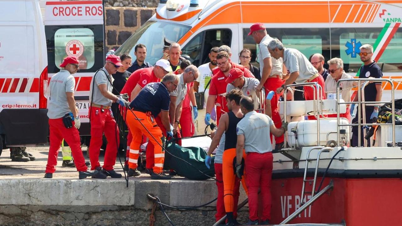 El Bayesian, un yate de 56 metros de eslora con bandera británica, estaba anclado cerca de Porticello, Palermo, cuando se volcó durante una tormenta el lunes. El yate transportaba a 22 personas, de las cuales 15 sobrevivieron.