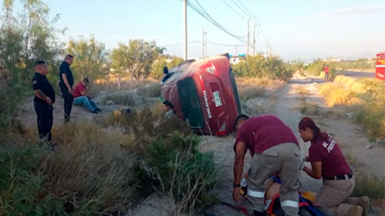 Un vehículo Nissan Versa, color guinda, volcó en el libramiento Carlos Salinas de Gortari, en dirección Sur a Norte, alrededor de las 7:30 horas, dejando a dos personas lesionadas y a un ciclista gravemente herido.